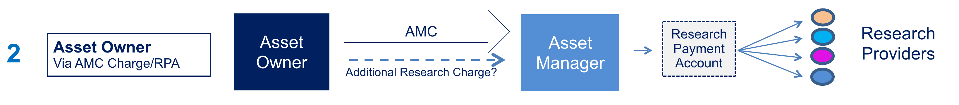 In option 2, the asset owner is making the research payments by providing additional (specified research funding to the asset manager’s RPA). This requires that asset manager to request additional funds and for the asset owner to agree. In the so-called “Swedish Model” an agreed research charge is deducted fro the fund on an accrual basis and transferred to the RPA. (This obviously requires a monetary research budget). Some managers may be reluctant to ask asset owners for specific additional research funding as it would require a change in operational processes for both parties.