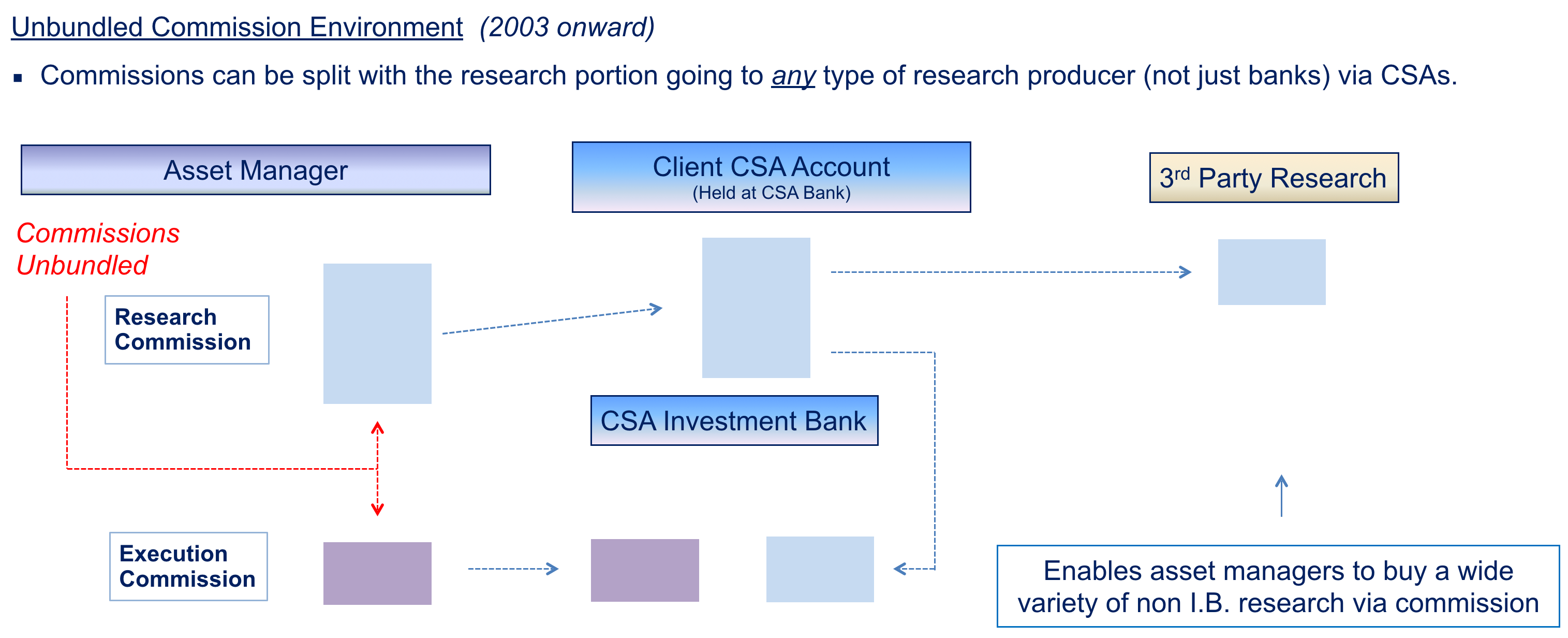 Commissions can be split with the research portion going to any type of research producer (not just banks) via CSAs.